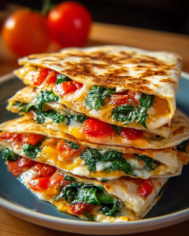 Knusprige Spinat Tomaten Quesadillas einfach zubereiten!
